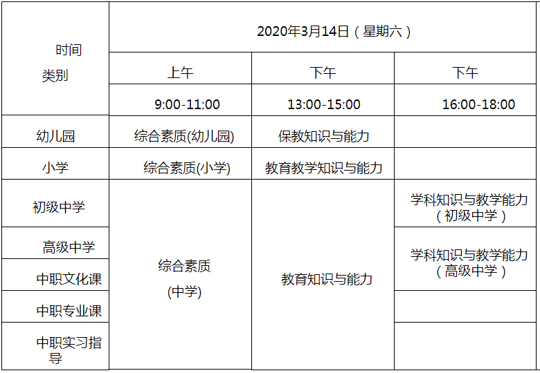 考生笔试报名及提交网上审核的时间为2020年1月9日9:30至11日16:00,审核未通过的考生再次提交审核的截止时间为2020年1月12日17:00,网上缴费截止日期为2020年1月13日,打印准考证时间为2020年3月9日至3月14日。